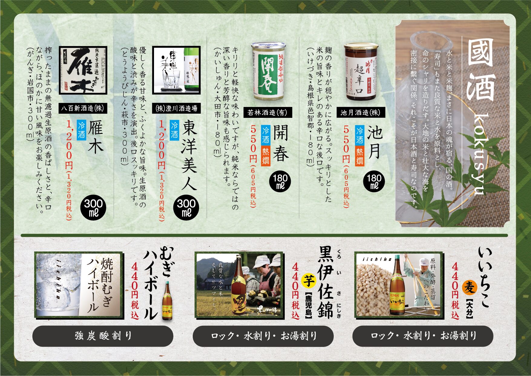 店内メニュー